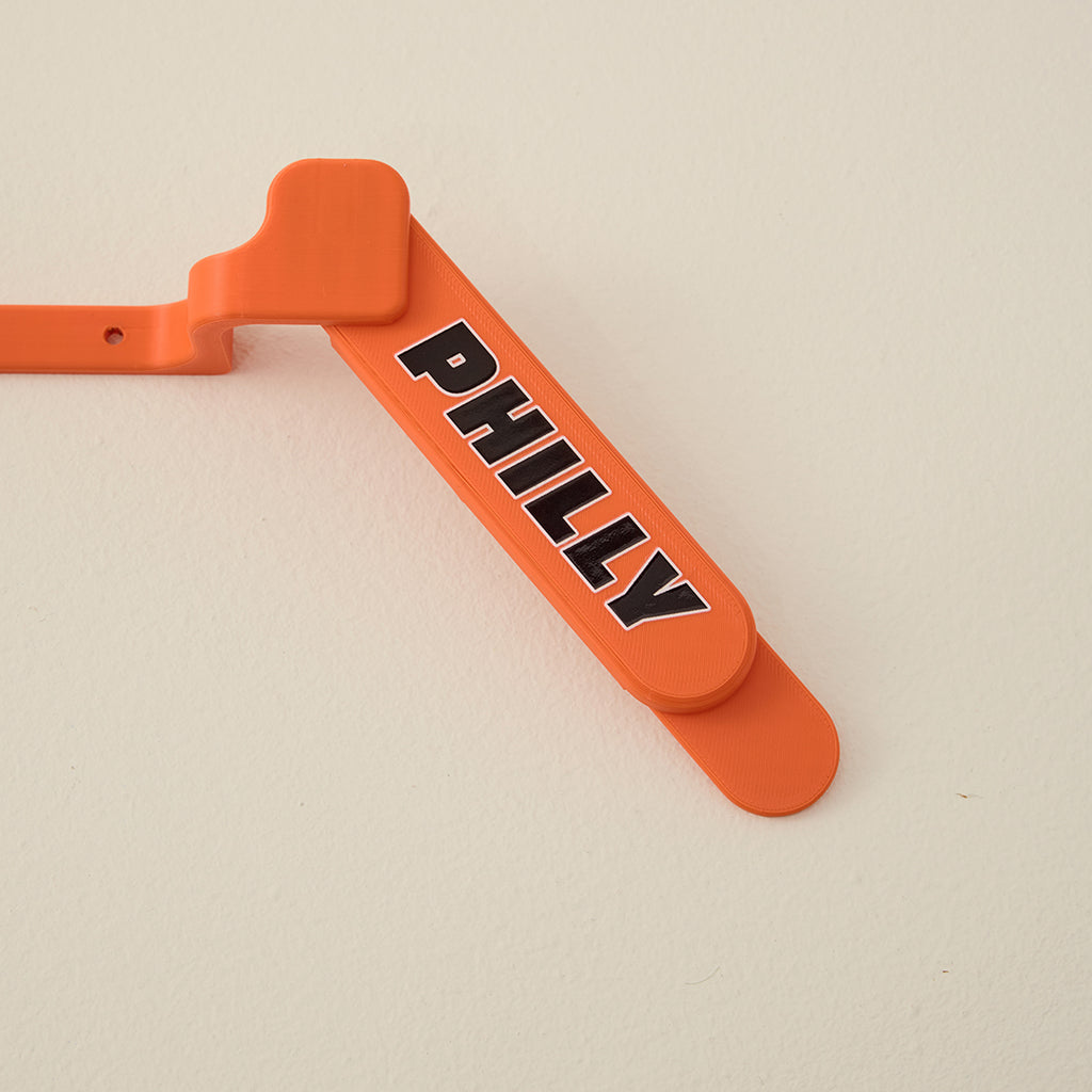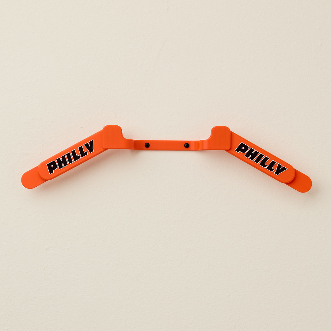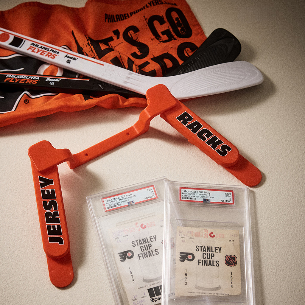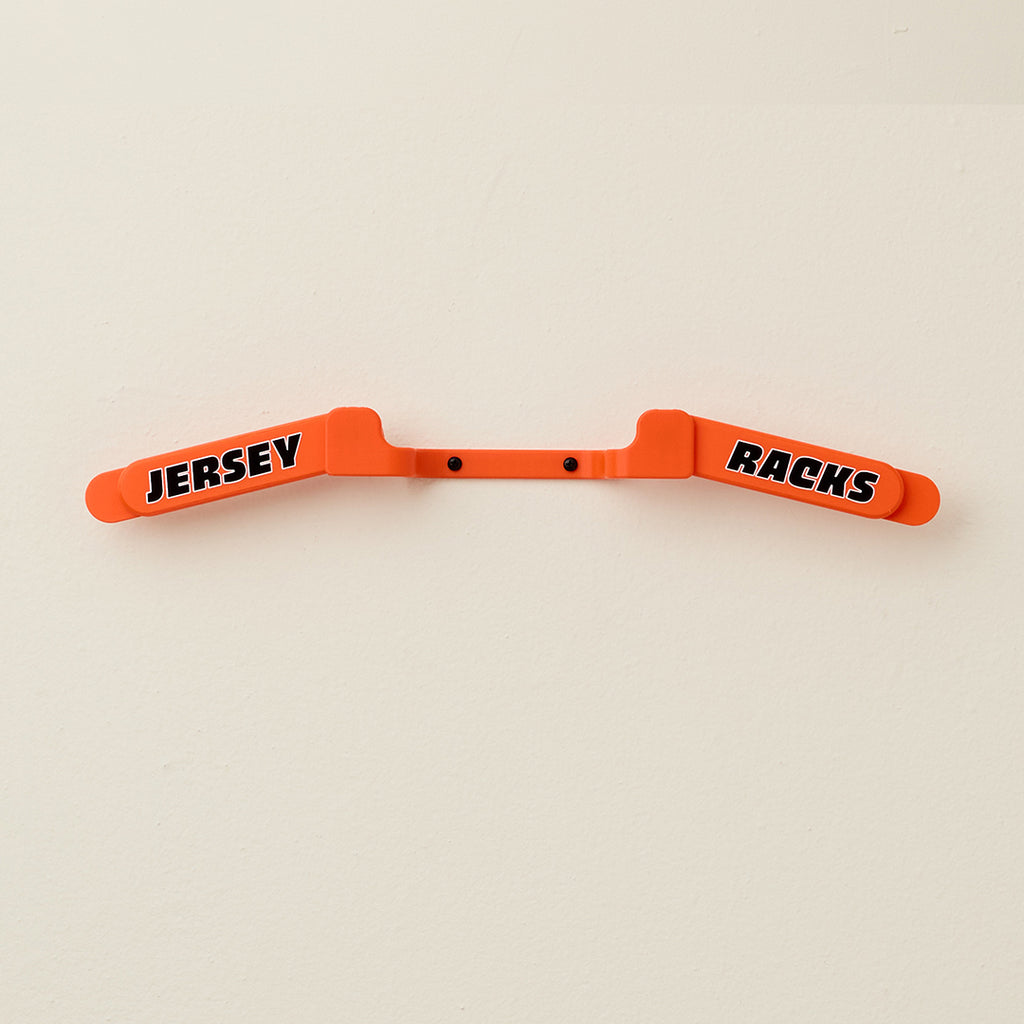 Display your Flyers jersey in style. Orange or black wall-mounted racks for hockey fans. Made in the USA by Jersey Racks.