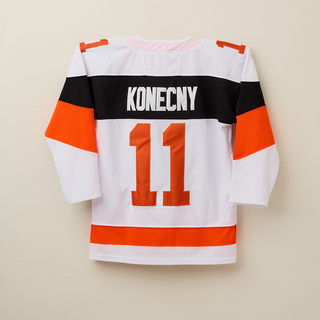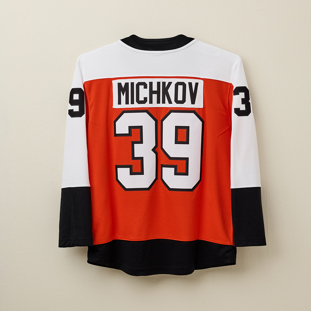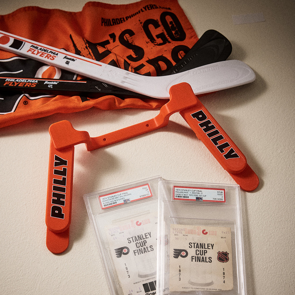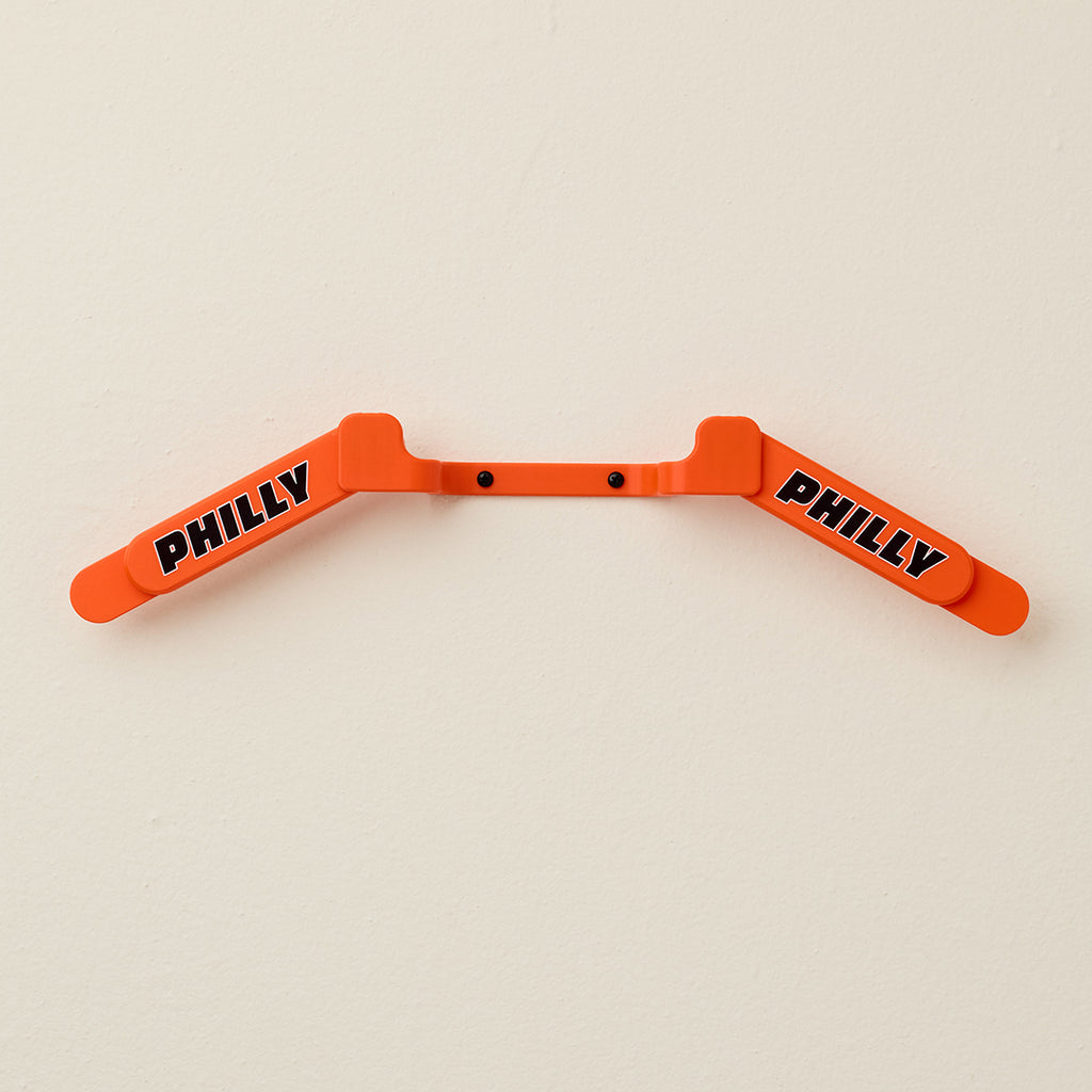 Display your Flyers jersey in style. Orange or black wall-mounted racks for hockey fans. Made in the USA by Jersey Racks.